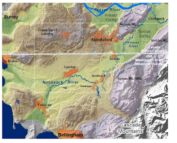 Abbotsford BC is north of the border in the same area.The city borders the former Sumas Lake area, which in 1925 was drained and the land reclaimed. The area has been used for farm and range land ever since.The TransCanada Highway runs right through it.Last week, during the storm, the dikes were overtopped with water, and the area is flooded right now, including parts of Abbotsford.