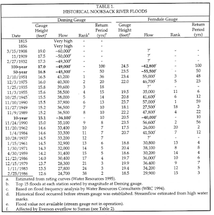 Flooding patterns changed on the Nooksack when they banned dredging the river for gravel a couple of decades back. This complicates the interpretation of water levels and velocity at specific sites.