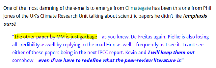 The training material codes Phil Jones Climategate email stating that he will keep certain papers out of the IPCC as climate denial category 5.2🤣