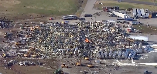A destroyed candle factory in hard-hit Mayfield, Kentucky