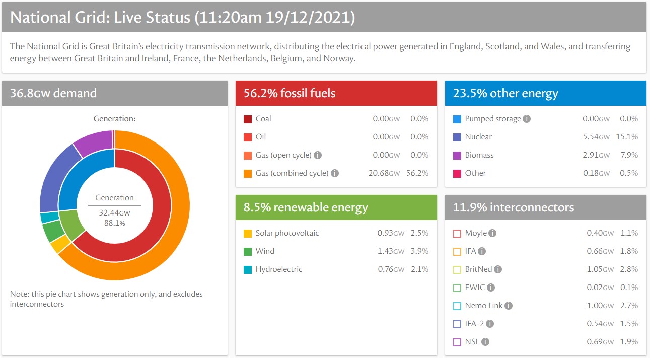 The UK imports 36% of its natural gas and all of its wood pellets. I think it imports coal. It imports electricity from four countries.