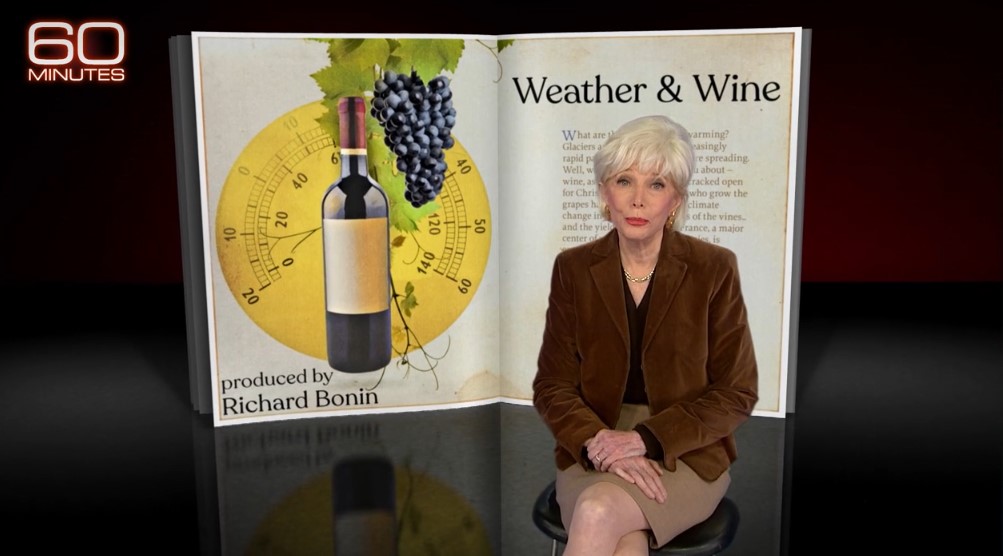 In the news segment, titled “Effects of climate change taking root in the wine industry,” 60 Minutes opines: