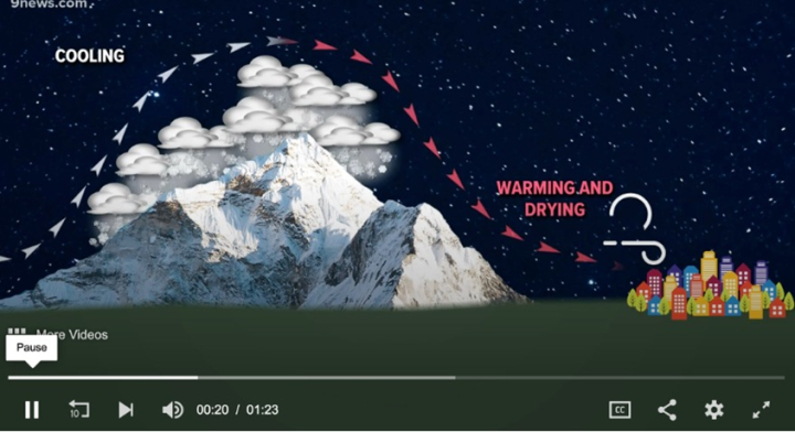 Alarmists also weaponized the dry conditions as solely due to global warming drought. They ignored the drying and warming effects of the Chinook winds that are very common in Colorado. Chinooks are known as “snow eaters” because as the winds pass over the mountains of the western USA they are forced upward and precipitate all their moisture. When those winds descend from the Rockies down to Boulder, temperatures rise adiabatically (due to pressure not added heat) and the warm dry air quickly removes moisture or snow from the surface. Southern California’s Santa Anna winds are similar and drive large fires.
