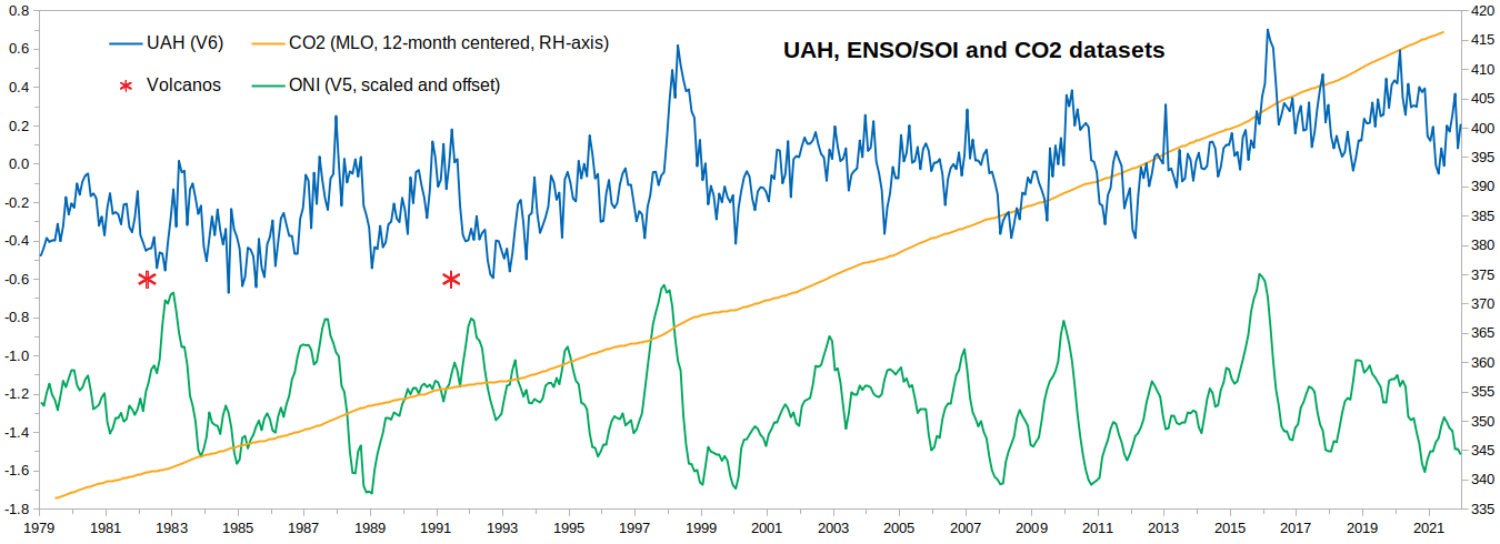 In fact, this latest temperature anomaly update for Dec 2021, the 6th warmest December in the UAH record by the way, despite continuing La Nina conditions, fractionally increases the rate of the long term warming trend.