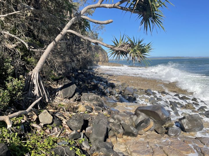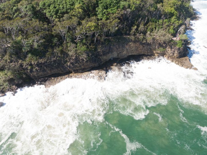 On the highest tide each year, I wonder if the waves will reach to the wave cut notch at the bottom of the cliff face, below Boiling Pot Lookout in Noosa National Park that is about halfway down the east coast of Australia, just near where I live.