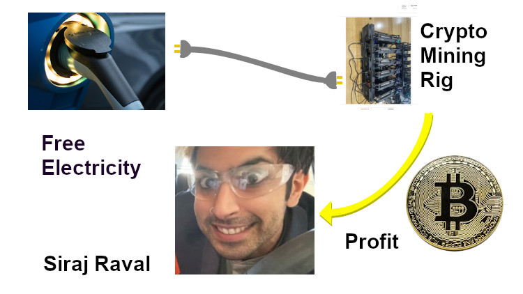 Note: RE the image, Siraj was mining Ether, not Bitcoin – but can you remember the symbol for Ethereum without looking it up? I can’t.