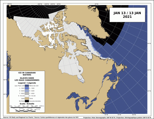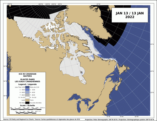 Compared to last year at this time, there was somewhat less ice along the Labrador coast but the difference is really negligible. By April, ice extent was well below average, especially in the Gulf of St. Lawrence, and there were few sightings of polar bears along the Labrador and Newfoundland coasts.