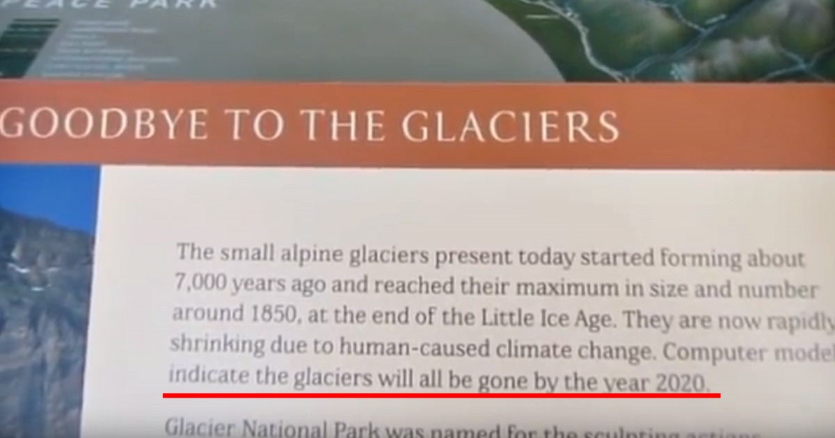 Remember, all the glaciers were gone in 2020. The Dept of the Interior said so and spent tax money installing signs to “educate” tourists.