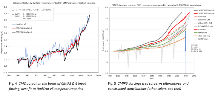 My thesis remains: if GCM’s replicate the historic temperature series, the derived forcings should do the same through the CMC algorithm. Moreover, these forcings should be comparable to the historic data we have on the concentration-trends of GHG’s and their respective radiative forcing strengths. If not, these climate models must be wrong and cannot be used in forecasting the future climate.