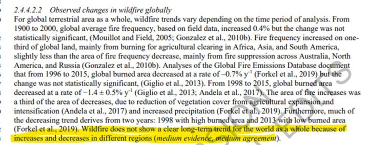 Interestingly, WG2 reports that globally, wildfire shows regional patterns but no overall global trend