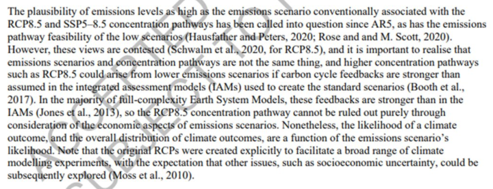 Instead they quote the widely discredited & COIed Schwalm paper to justify emphasizing RCP8.5 & some hand-waving about C cycle feedbacks