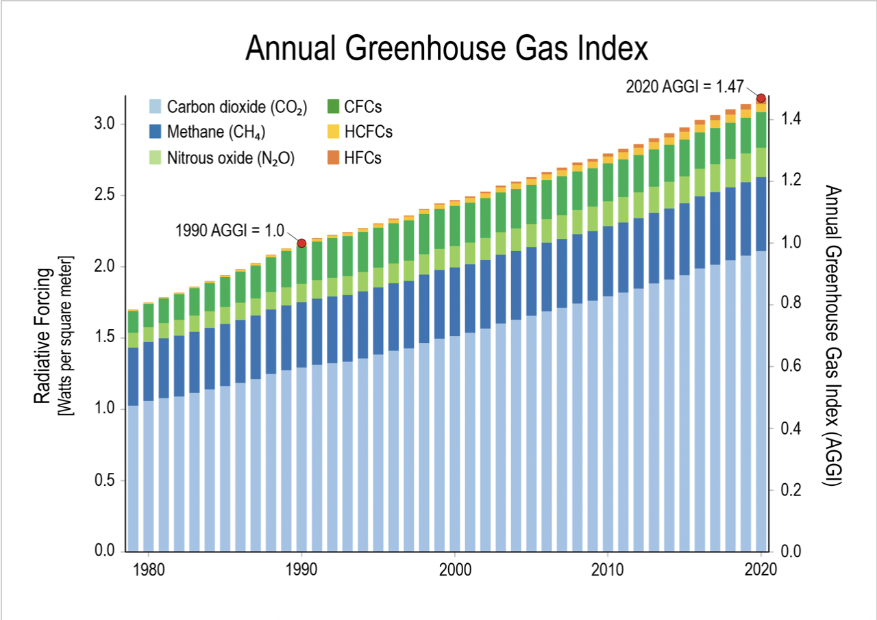 it looks terrifying , but when we convert it in watts/m2 , the real climate unit , the impact on Earth is not so impressive , only a few milli degrees per year as the AGGI shows it :