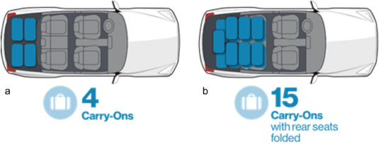 Fig. 6. Number of cases that fit in an electric car. (a) with rear seats unfolded, (b) with rear seats folded [48].