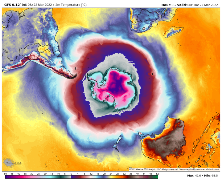 This past week two left-leaning media outlets, MSN (via The Washington Post aka WaPo), and the always alarmed UK based The Guardian ran stories saying the Arctic and Antarctic, had experienced “unprecedented” high temperatures. These claims can’t be verified since they were the results from a set of weather model simulations, indicating variations of above normal temperatures for the regions, not actual surface temperatures measured by ground-based weather stations.