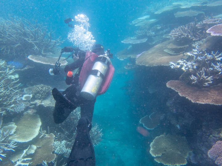 There was some bleaching, especially around the perimeter of John Brewer Reef – on the sandy sea floor where the Australian Institute of Marine Science (AIMS) surveyed and concluded coral cover is never more than 30% – but most of John Brewer Reef is still covered in more than 80% colourful corals. This high percentage is denied by AIMS because they never survey the reef crest.