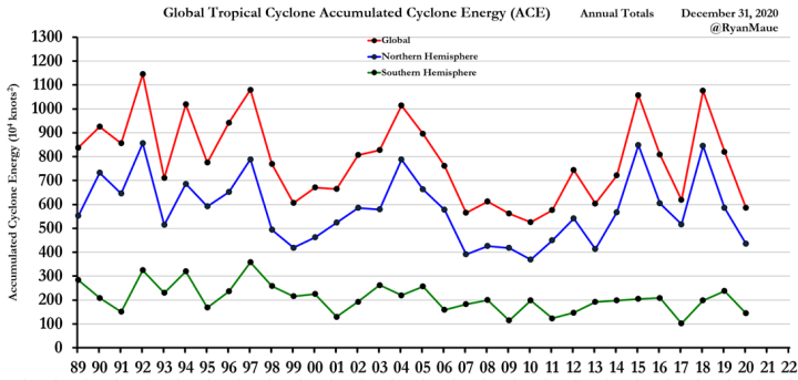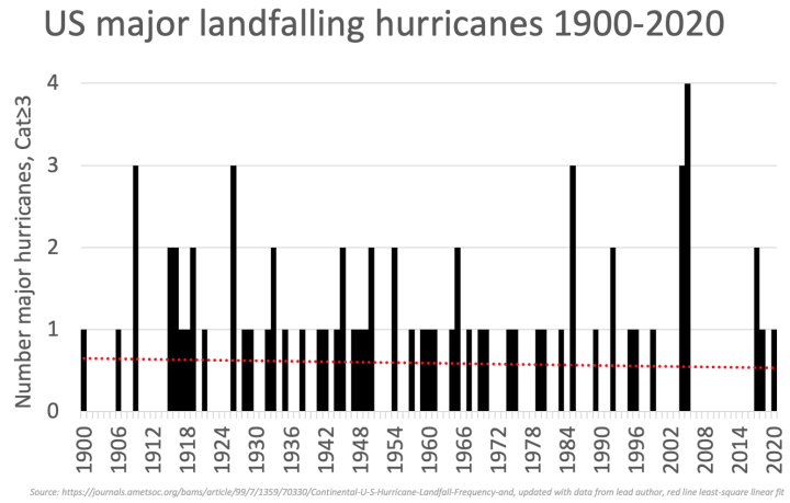 The attribution claims made in Nature Communications are also not supported by available hurricane data. Despite 2020 being an active hurricane season, long-term data show no increase in the number or intensity of hurricanes in the North Atlantic.