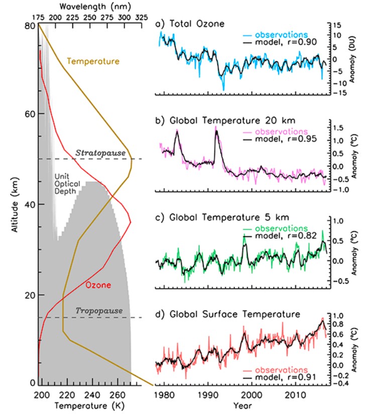 Decreases in ozone cannot fully account for the temperature drop seen in the stratosphere. GHG forcing is playing a role as well.
