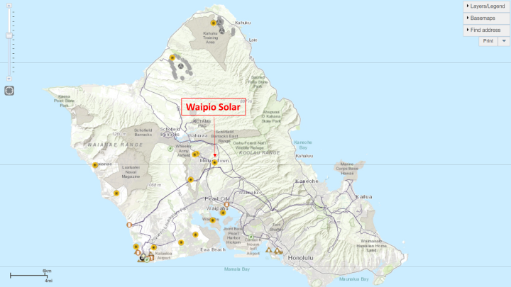 Waipio Solar has a net summer capacity of 45.9 MW. It is located in the best solar resource area on Oahu: