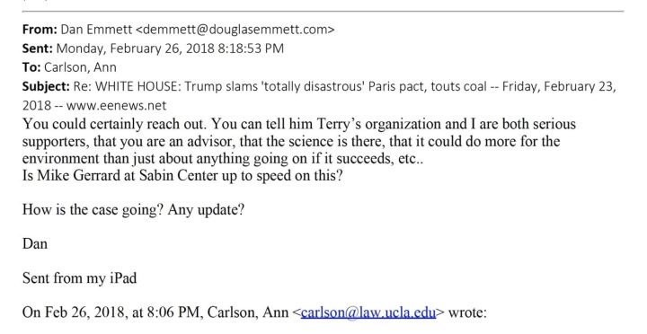 It is possible that the “serious support” for “the nuisance litigation” was funneled into RLF’s $3 million that has so far been reported. However, Emmett’s foundation’s 990s (and his word choice) suggest this was personal money or, if it was from his own foundation, then that money too may have been routed through at least one other organization. Likely conduits for that latter task, from the various 990s, include Rockefeller Philanthropy Advisors and Sustainable Markets Foundation, even the University of California.