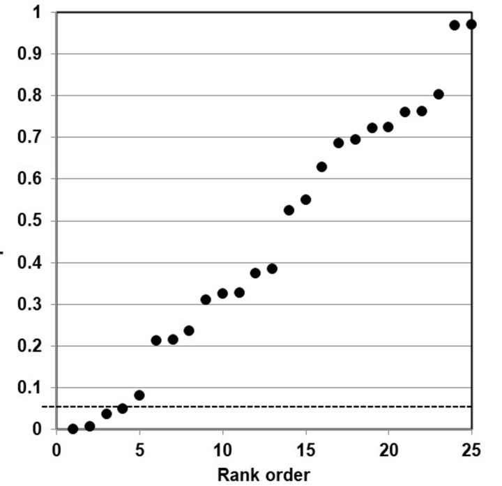 We have reported on how to independently evaluate the statistical reliability of meta-analysis studies using p-value plots (see here). A p-value plot is straightforward to construct and it is interpreted in the following way… if p-values roughly fall on a 45-degree line in the plot, they support randomness (no real effect). If the p-values are mostly smaller than 0.05, they support a real effect. A bilinear, hockey stick, shaped p-value plot indicates ambivalence (uncertainty) in an effect.