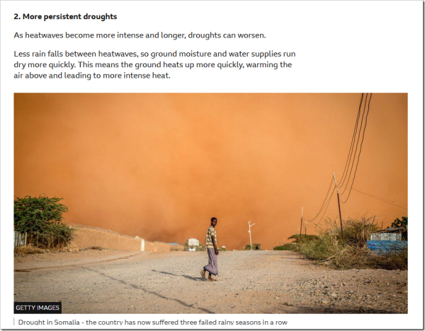 As for droughts, even the IPCC could find no evidence that they were getting worse worldwide. According to AR6, while some regions such as the Mediterranean may be getting drier, others show the reverse, such as India. We certainly know that vast swathes of Africa, the Middle East and Asia suffered catastrophic droughts during the 1970s, as a direct consequence of global cooling.