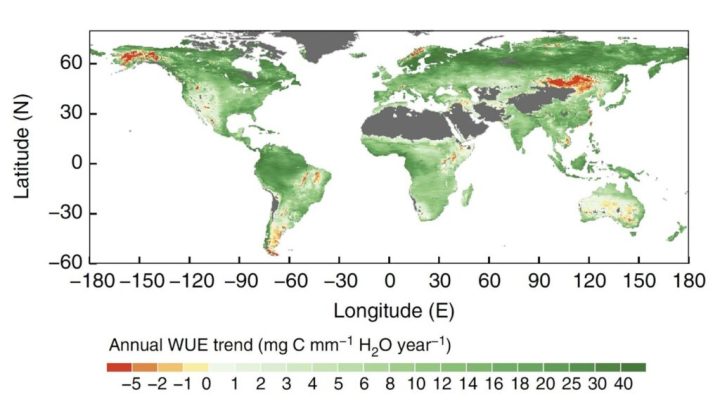 Similar-magnitude increases in water use efficiency have also been noted in Douglas fir and Ponderosa pine from the United State, in Norway spruce in Italy and Germany, cypress trees in southern Chile, Juniper, Acacia and Aleppo Pines in northern Africa, as well as a host of other trees from numerous other locations (see many examples here). But perhaps the best evidence of a modern increase in water use efficiency due to rising levels of atmospheric CO2 comes from a key study published by Cheng et al. (2017) in the scientific journal Nature Communications.