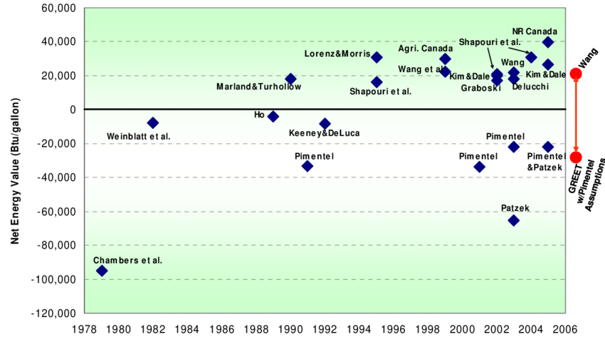 Since then Argonne Natl Laboratories highly detailed GREET model has been developed and refined, and there are dozens of scientific papers on net energy balance of ethanol from corn.