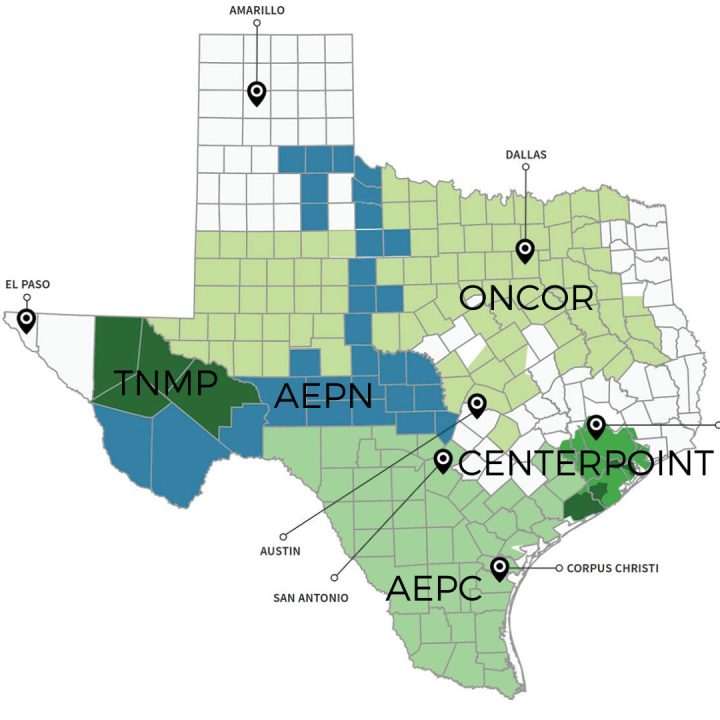 Areas not covered by TDU’s have municipal utilities, electric cooperatives or are served by investor-owned utilities.