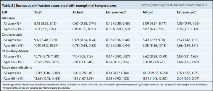 The excess death fraction of total deaths was 5.09% (95% CI 4.64–5.47%) for cold-related deaths
