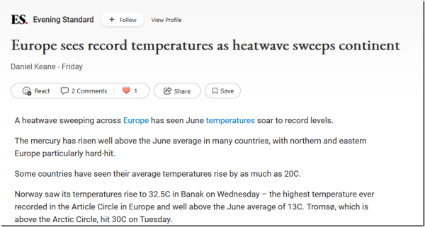 Yes. But the point of the newspaper articles was that this heat wave was a record for June. Last May, Wiki said the June record for Tromso was 29.5C. Now it is 29.9C (85.8F).