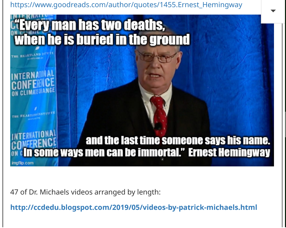 I’ve been enjoying some of those videos and it just makes one truly appreciate what a gift Dr. Michaels was for debunking junk climate science and inserting reality/truth in its place!