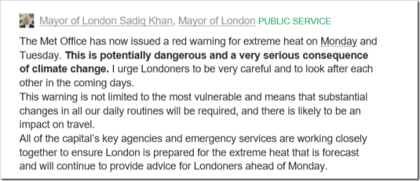 It seems that Sadiq Khan has been sending this extremely irresponsible and misleading warning out to his citizens – (my bold):