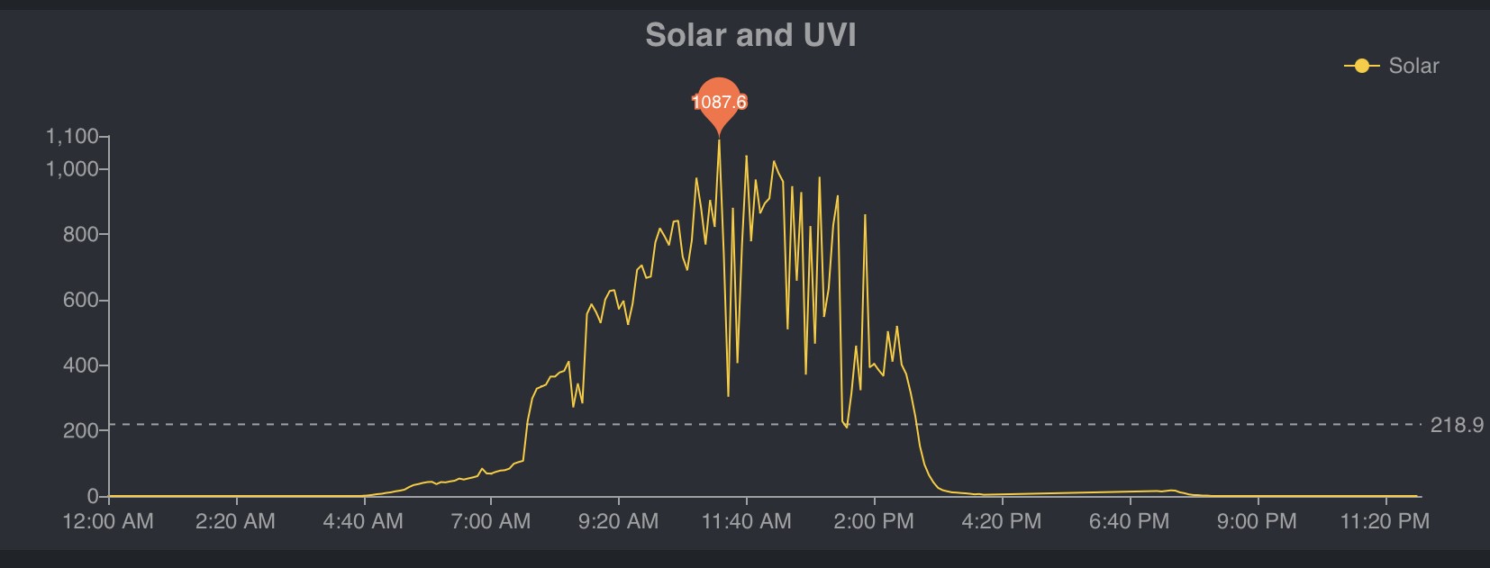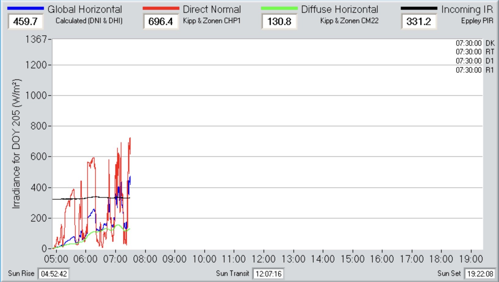 Here is an example of what I’m referring to, sunlight at a single location in Colorado, notice the difference between direct, diffuse, etc. (this displays a single day, more info will be visible in the afternoon):