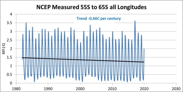 So the Southern Ocean has cooled over the period as expected.