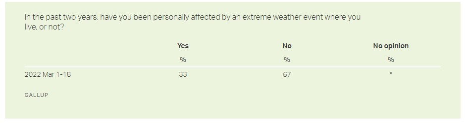 Every poll I have seen previously showed climate change at or every near the bottom of peoples concerns. Has anyone seen recent polls where that has changed?