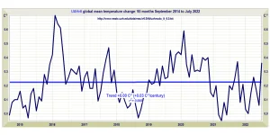 The New Pause, notwithstanding the much-publicized heatwaves in Britain and some other countries, has lengthened by another month to 7 years 11 months.