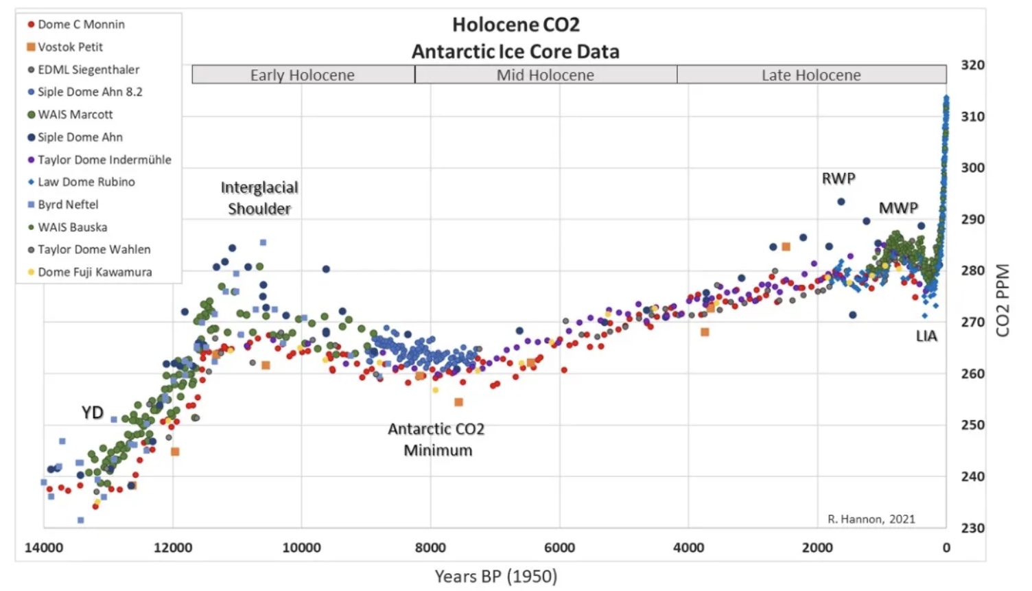 LOL, using YOURs and the IPCC’s argument you show that CO2 doesn’t drive large temperature swings up and down during the last 11,000 years at all.