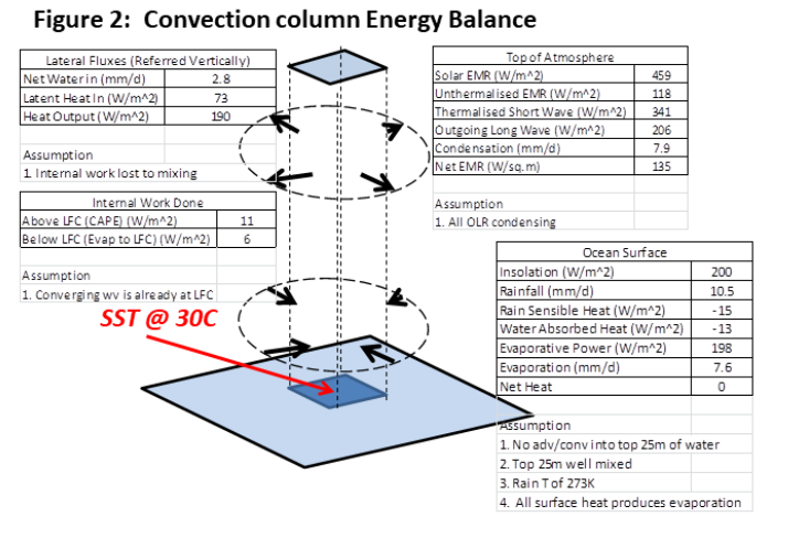 Eschenbach 2010 (8) introduced “The Thunderstorm Thermostat Hypothesis – how Clouds and Thunderstorms Control the Earth’s Temperature”. Eschenbach 2020 (9) in https://whatsupwiththat.com/2020/01/07/drying-the-sky uses empirical data from the inter- tropical buoy system to provide a description of this system of self-organized criticality in which the energy flow from the sun into and then out of the ocean- water interface in the Intertropical Convergence Zone results in a convective water vapor buoyancy effect and a large increase in OLR This begins when ocean temperatures surpass the locally critical sea surface temperature to produce Rayleigh – Bernard convective heat transfer.”