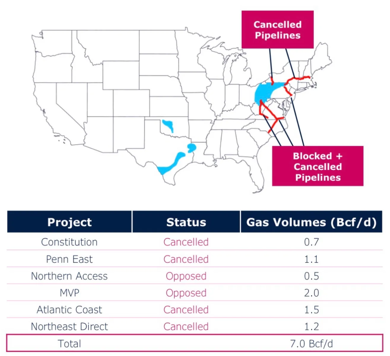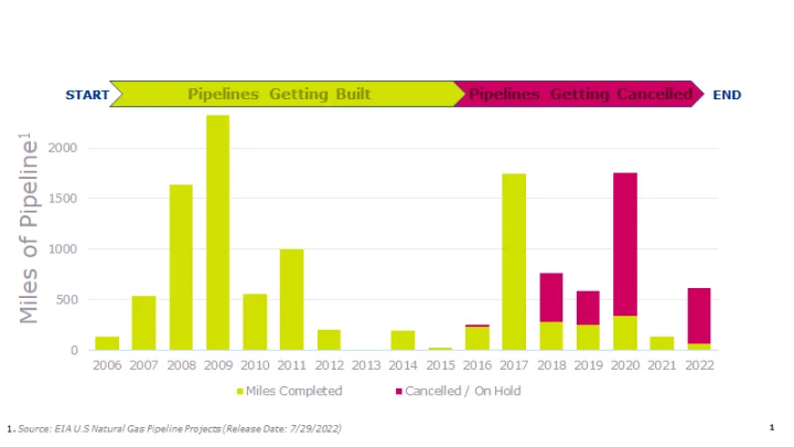 But industry has been strangled by Democratic opposition to pipelines. - Our bountiful natural gas is only useful if it can be transported by pipeline—to where it is needed in the US and to export terminals for shipment abroad. But in recent years we have seen a Democrat-led movement to block pipeline after pipeline—such as these 6 pipelines.15