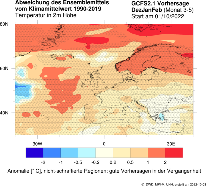 “If in Central Europe October turns out to be more than 2 degrees too warm and at the same time also too dry, then a cold or extremely cold January is to be expected with a very high probability.”