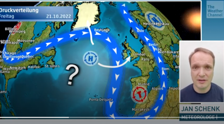 Meteorologist Jan Schenk explains how La Nina impacts the Jet Stream, in most cases leading to mild Central Europe winters. Image cropped here.