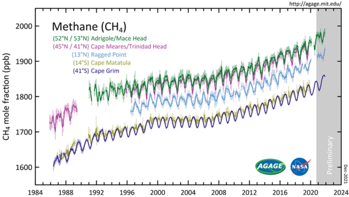 Where did those numbers come from? The chart in the head post shows ~1600-1750 ppb in 1984, and ~1800-1950 ppb in 2020.