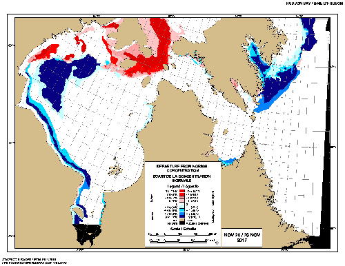 I couldn’t find any archived ‘departure from normal’ charts I’d archived that had this much dark blue in Davis Strait at this date. The closest I could find was 2017, which was also a really early freeze-up in Hudson Bay: