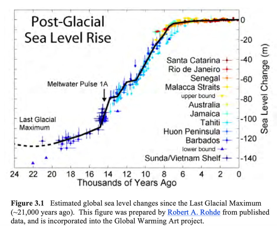 The source of this should be pressed for when and how this will unfold. Obviously things will not continue as they are now until someday in 2100 when there’s a 4-8 meter step change in sea level. When will sea level rise become 30x today’s observation? When will the first coastal towns be abandoned? Even refusal to answer questions like this is informative.