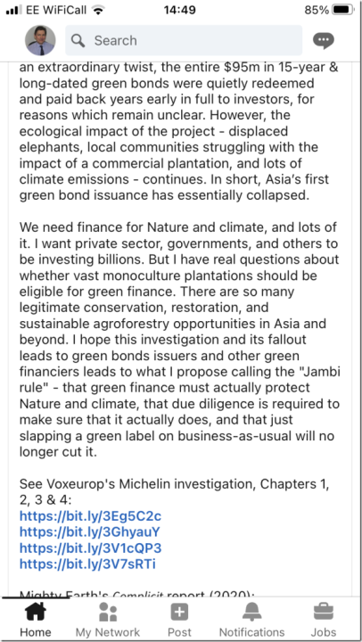The other side would be “thousands of acres of wasteland”. Mighty Earth’s claim of inadequate due diligence is possibly just a standard opinion on their part.