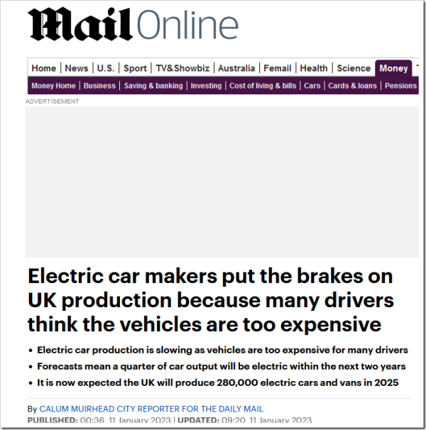 And all of this highlights the immense problems facing our car industry as the 2030 deadline nears. They are being forced to invest billions in setting up new assembly lines and engine plants to cater for the new models, whilst at the same time running down conventional car operations. On top of that, they may find that they cannot sell all of the EVs they are producing; or alternatively if they cut back on EV output, they risk losing market share.