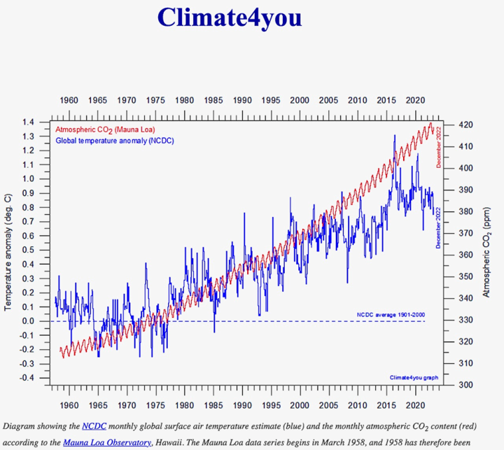 The correlation of CO2 and global average temperature has changed three times since 1940 (1940 to 1975 negative correlation, 1975 to 2015 positive correlation and 2015 to 2023 no correlation)