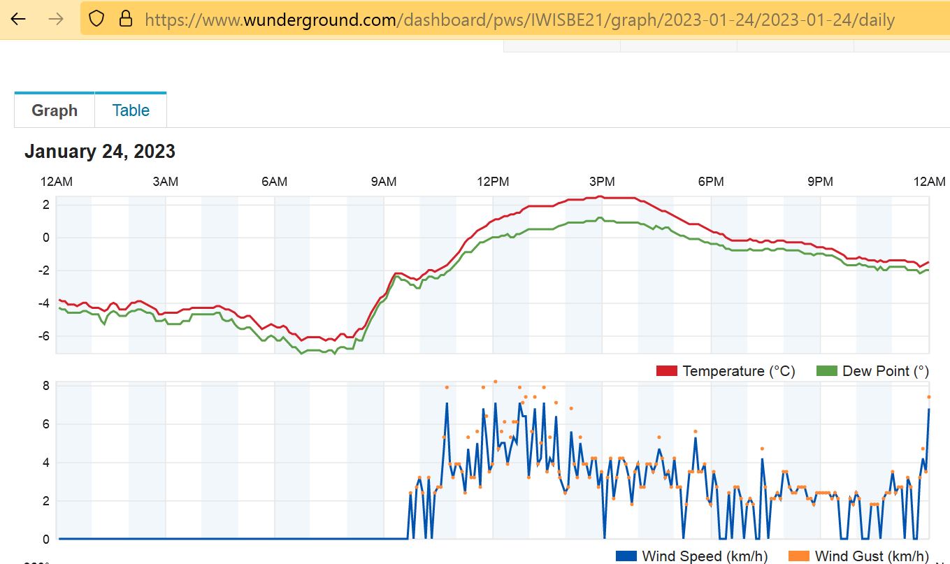 Attached is yesterday’s Temp & Wind-speed plot from a ‘probe’ near me.
