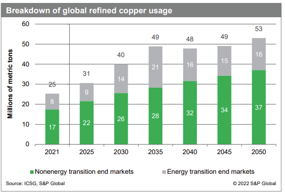 Figure 1. Estimates of the amount of copper needed to achieve Net-Zero 2050.