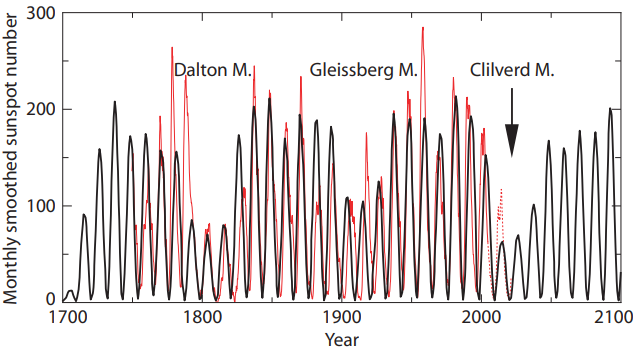 Clilverd, M. A., Clarke, E., Ulich, T., Rishbeth, H., & Jarvis, M. J. (2006). Predicting Solar Cycle 24 and beyond. Space Weather, 4. doi:10.1029/2005SW000207